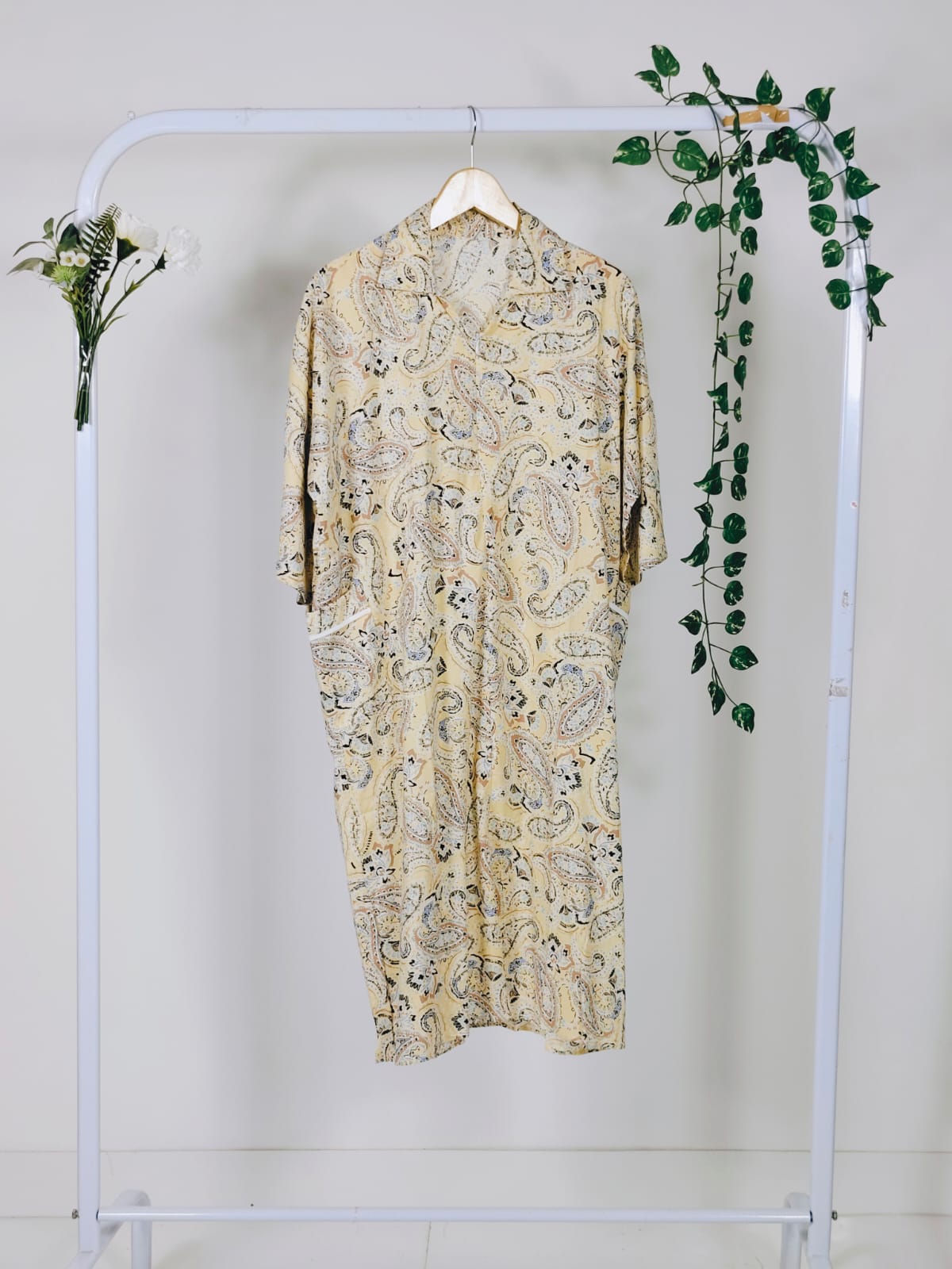 Modelnya longgar dengan kerah kemeja dan lengan ¾, bikin tampil santai tapi tetap rapi — cocok untuk bersantai di rumah, jalan sore, hingga quality time bersama keluarga tercinta.