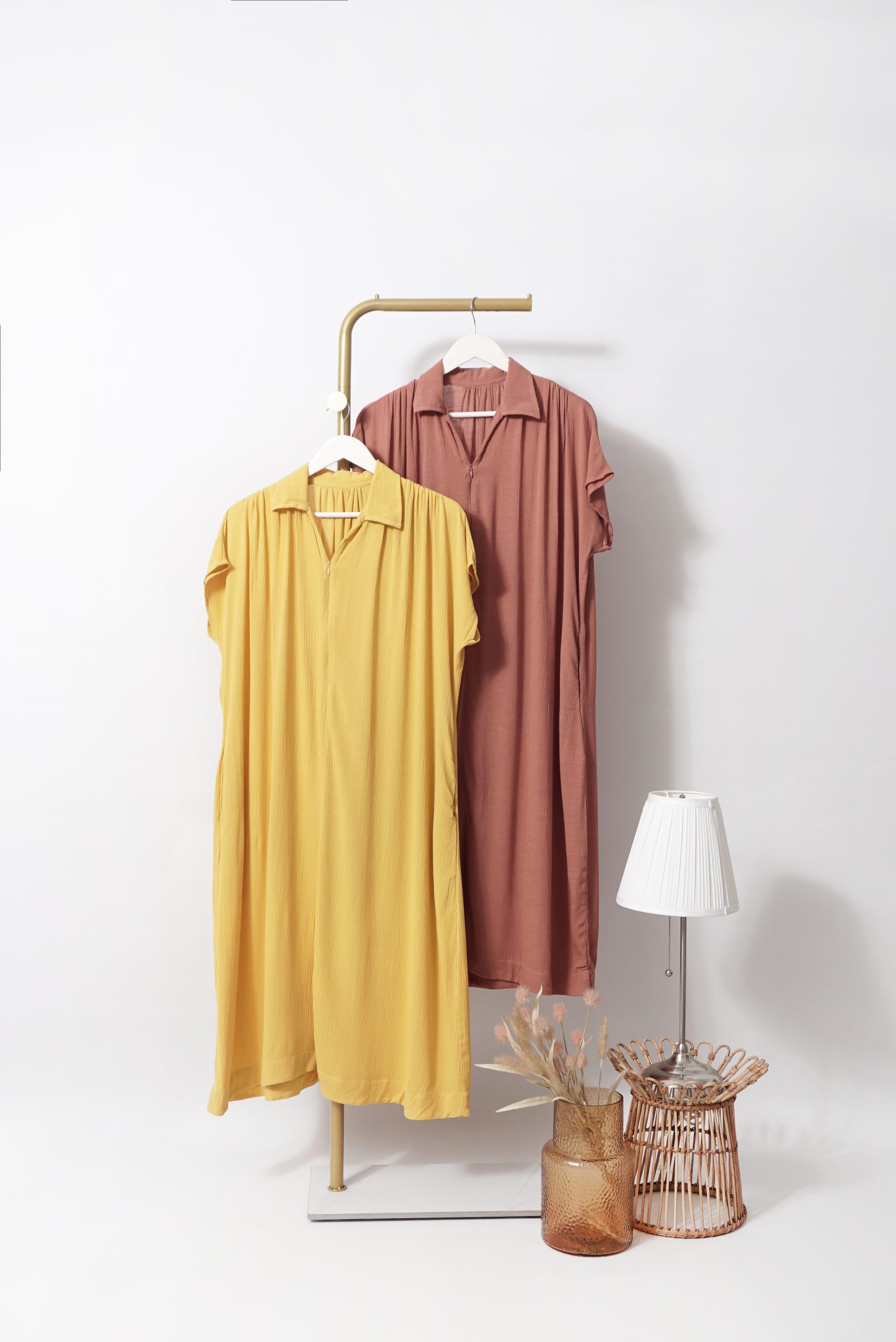 Tersedia dalam pilihan warna Kuning dan Coklat, dua tone hangat yang menghadirkan energi positif dan kesan elegan tanpa berlebihan.