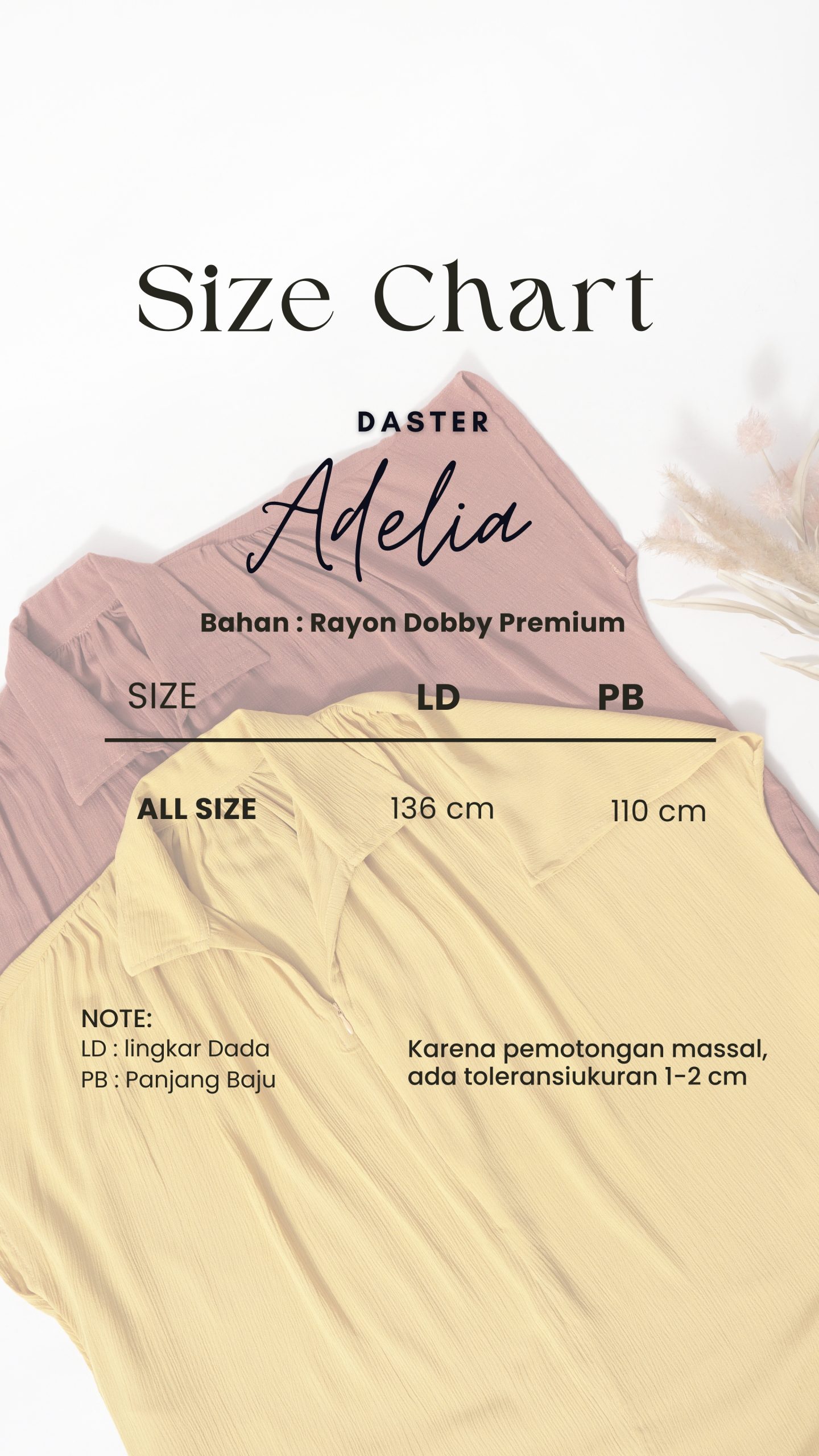Terbuat dari bahan Rayon Dobby Premiun yang ringan dan adem, Daster Adelia punya karakter kain yang jatuh natural, nggak mudah kusut, dan tetap terlihat rapi meski dipakai seharian.