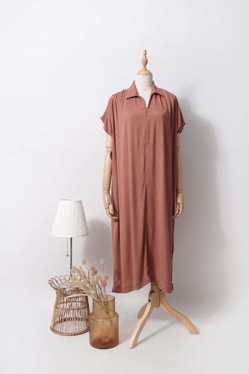 Detail: Terdapat Kerah, Resleting bagian depan ( Busui Freindly), Saku kanan dan kiri, Lengan pendek, Model Berkerut